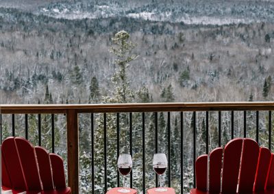 Les espaces communs incluent des terrasses, un belvédère pour apprécier la vue, un foyer extérieur favorisant les moments de rassemblement ainsi qu’un espace de jeu de pétanque, créant un lieu convivial et structuré. Cette dimension communautaire ajoute une valeur réelle au projet, améliore l’expérience des occupants et renforce l’attrait locatif des chalets.